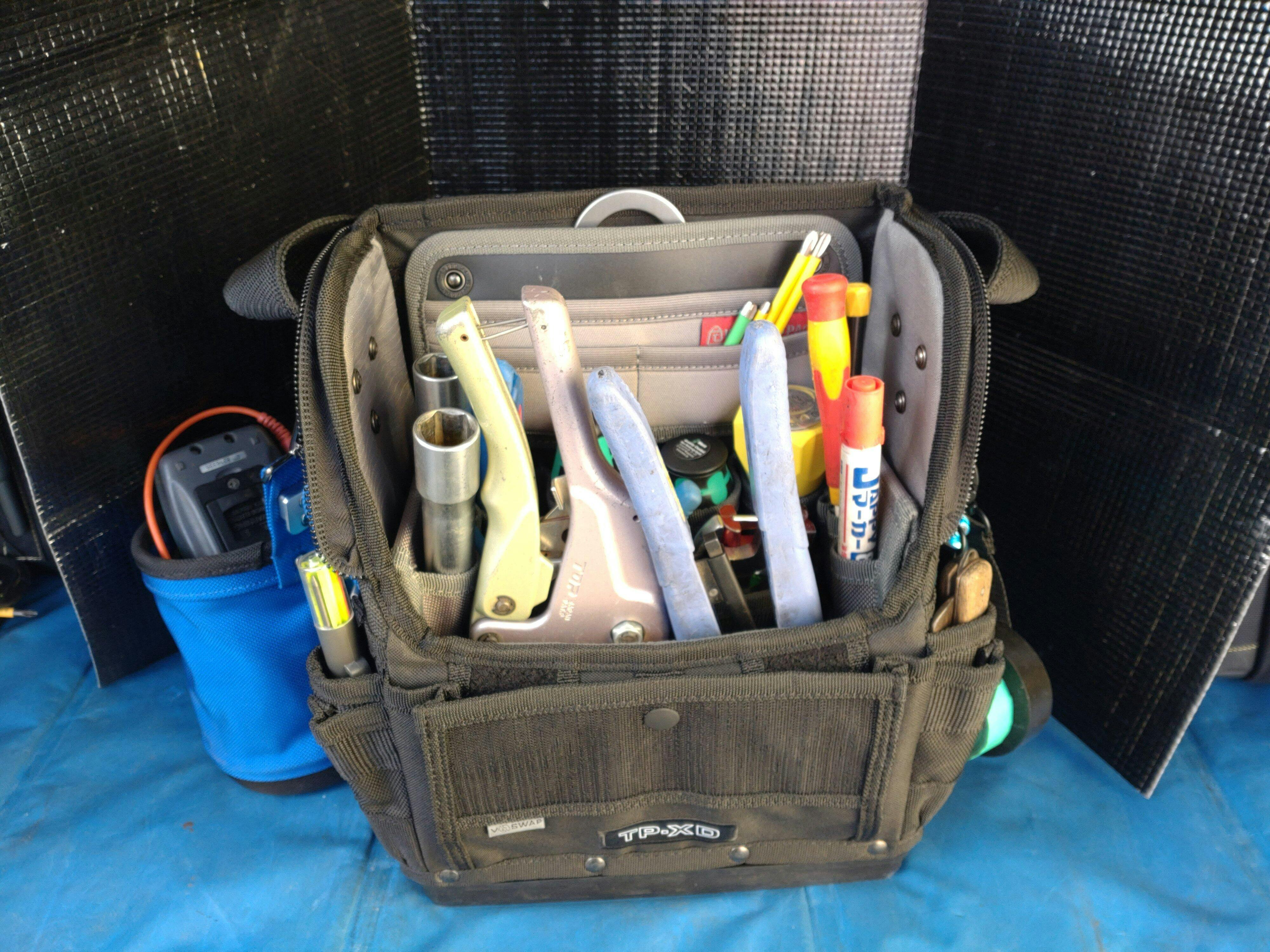 余分なポケットがないので、ケーブルや大きい工具をそのまま収納でき、幅広い用途にてTP-XD BLACK OUT , TP-XXL BLACK OUTをご利用いただくことが可能となります。