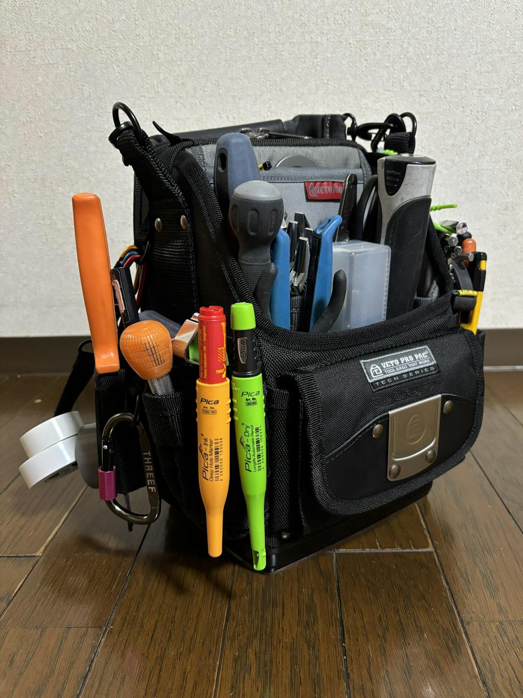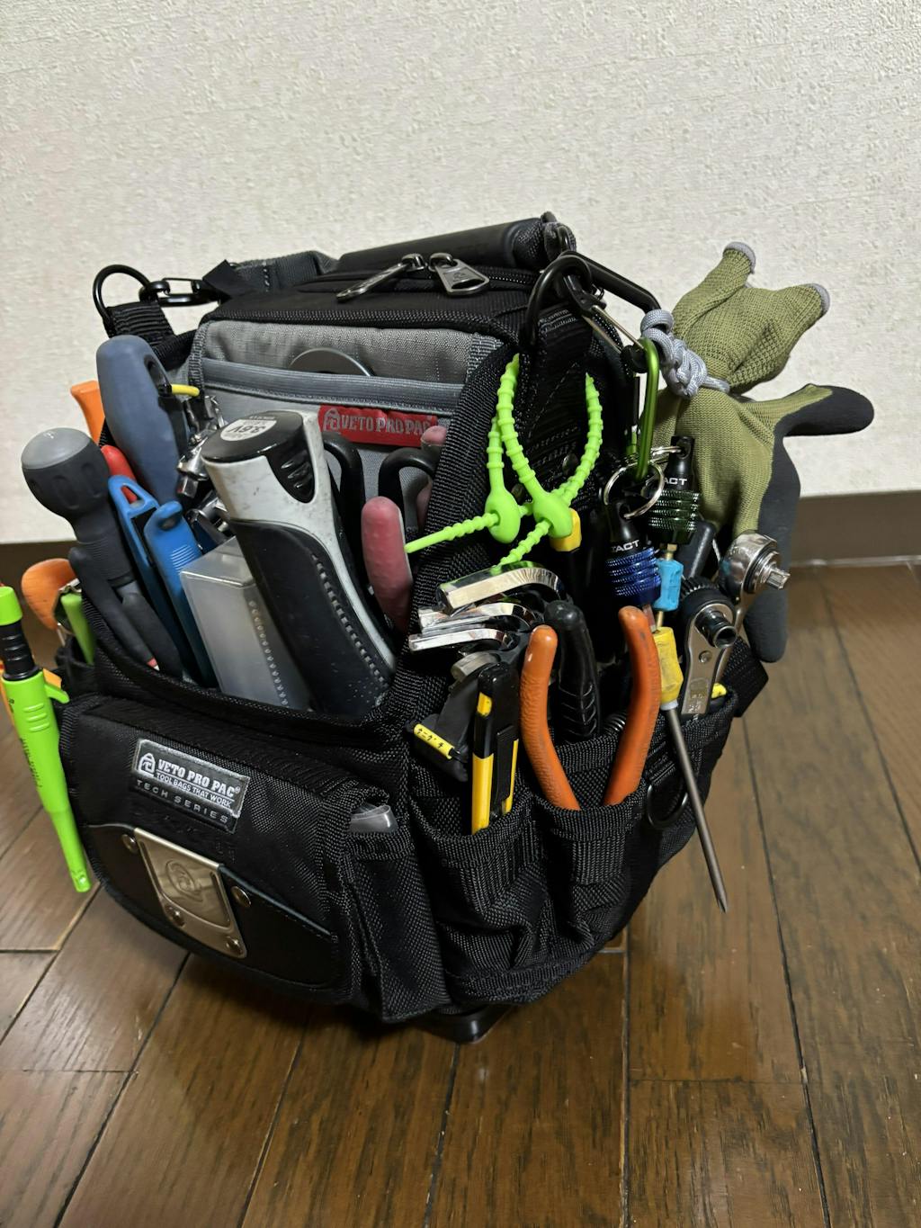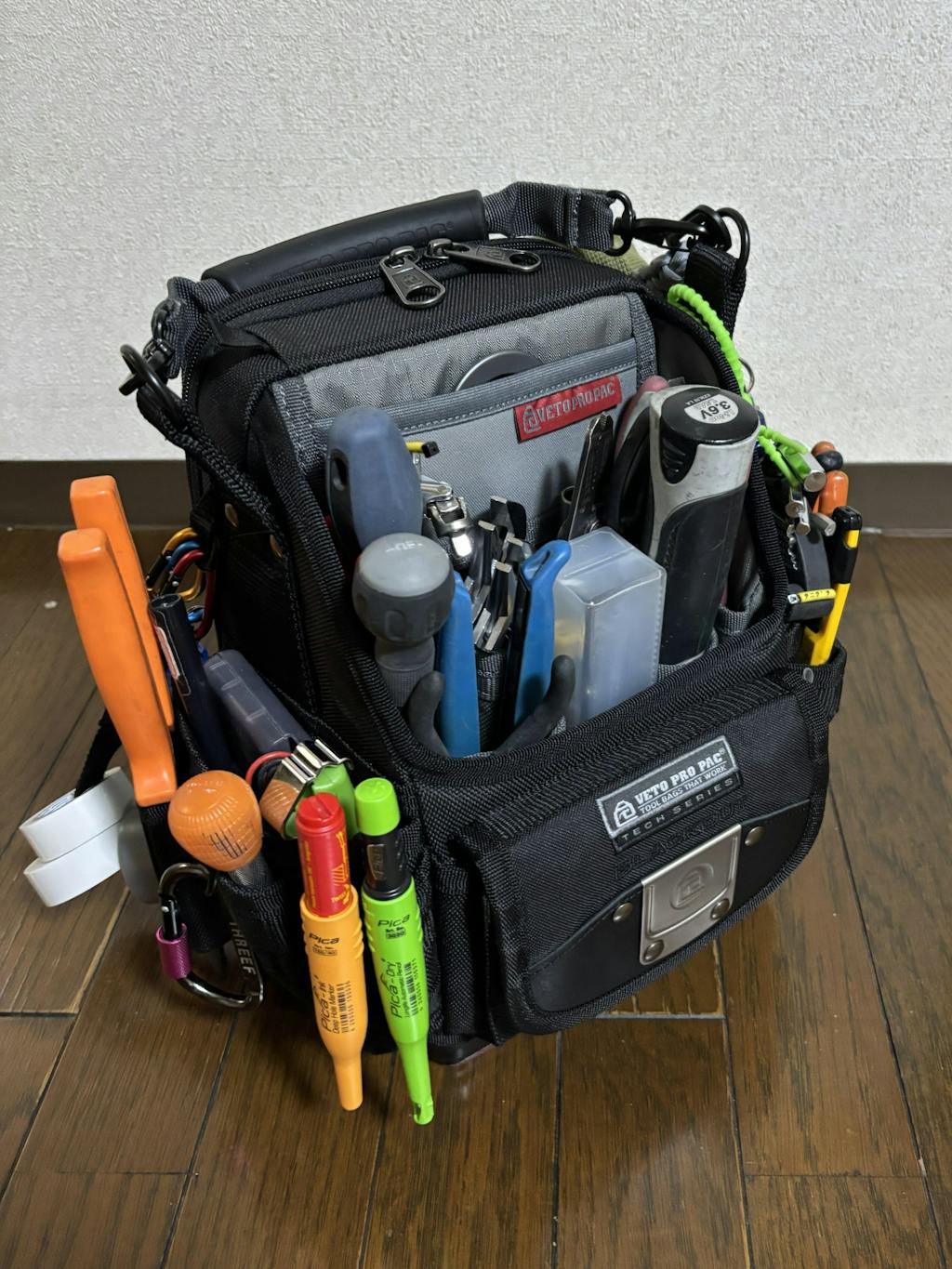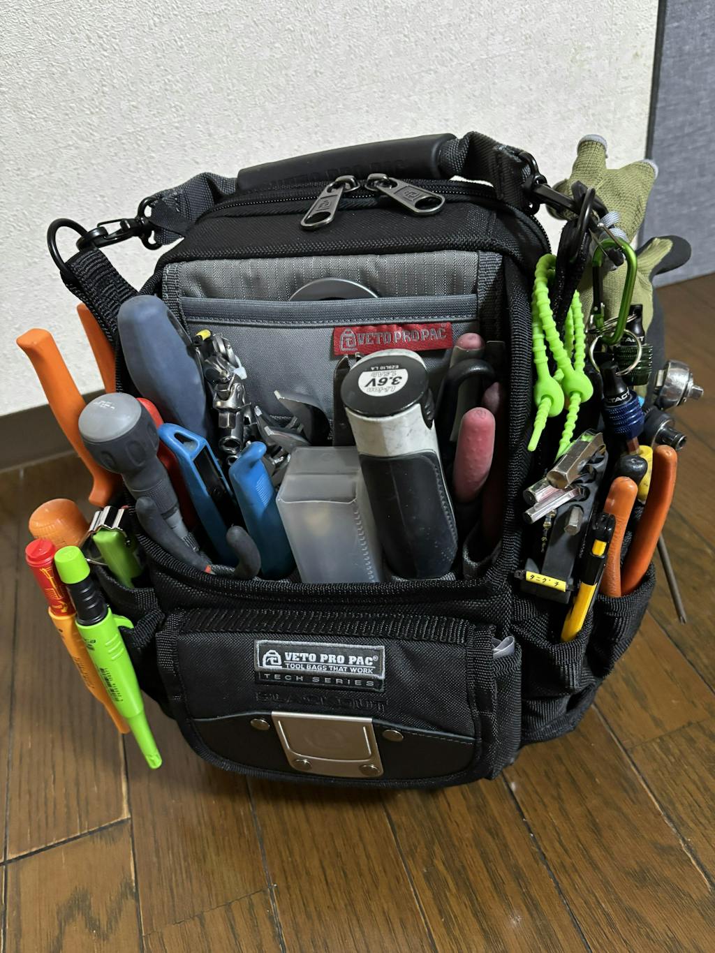ベトプロに興味を持ち、どのシリーズが自分の手持ち工具を収納するのに向いているか吟味して、SB-LDを購入しました。前面にはドライバー類、モンキー類、サイドにはプライヤー類、ハサミ、コンベックスなどを納めました。中にはビス類入れてます。 他のレビューにもありましたが、工具の位置が決まるだけでこんなに作業しやすくなるとは思いませんでした。嬉しい誤算です。ただの自己満工具バッグかなと思っていたので。。。笑 見た目のカッコ良さ、収納力、丈夫さ、どれを取っても日本製の他の工具バッグには無い魅力があります。他のシリーズも検討中です。新しいベトプロを購入するために日々の仕事頑張ります!