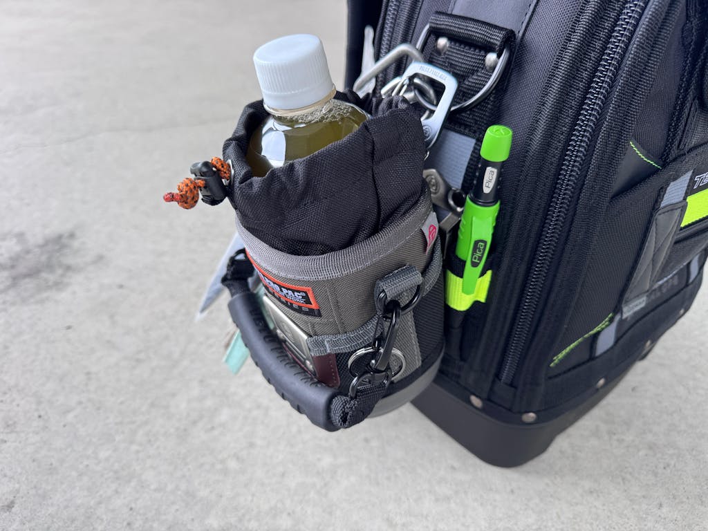 さらに多用途に対応するため、外部にはペンやドリルビットの収納に便利なポケットを2つ、加えてステンレス製のスケールクリップを備えています。