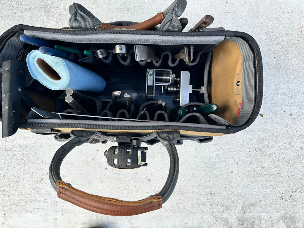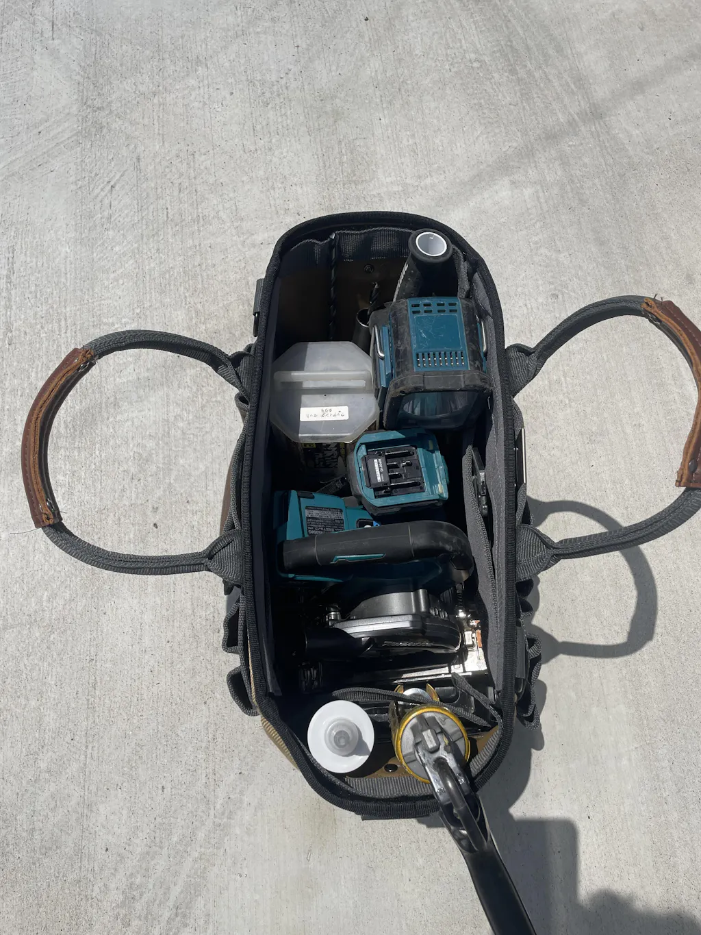 内ポケットは取外し、少量の電動工具+ハンドツールを収納して持ち運んでいます。