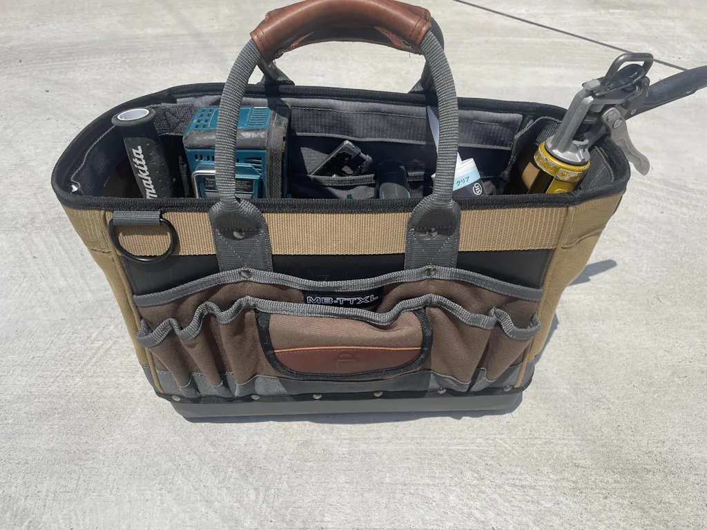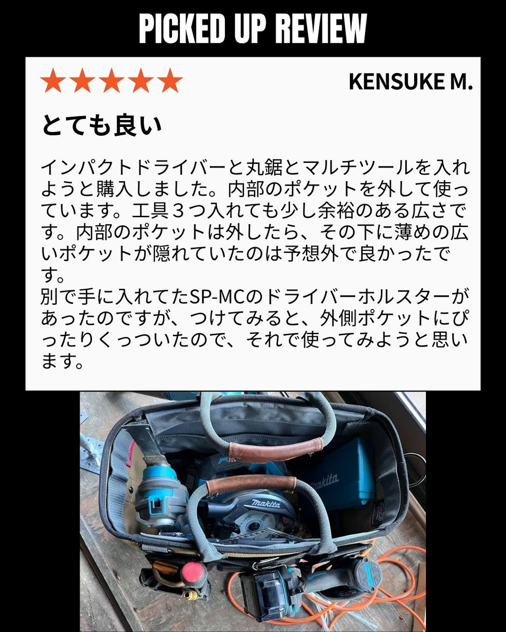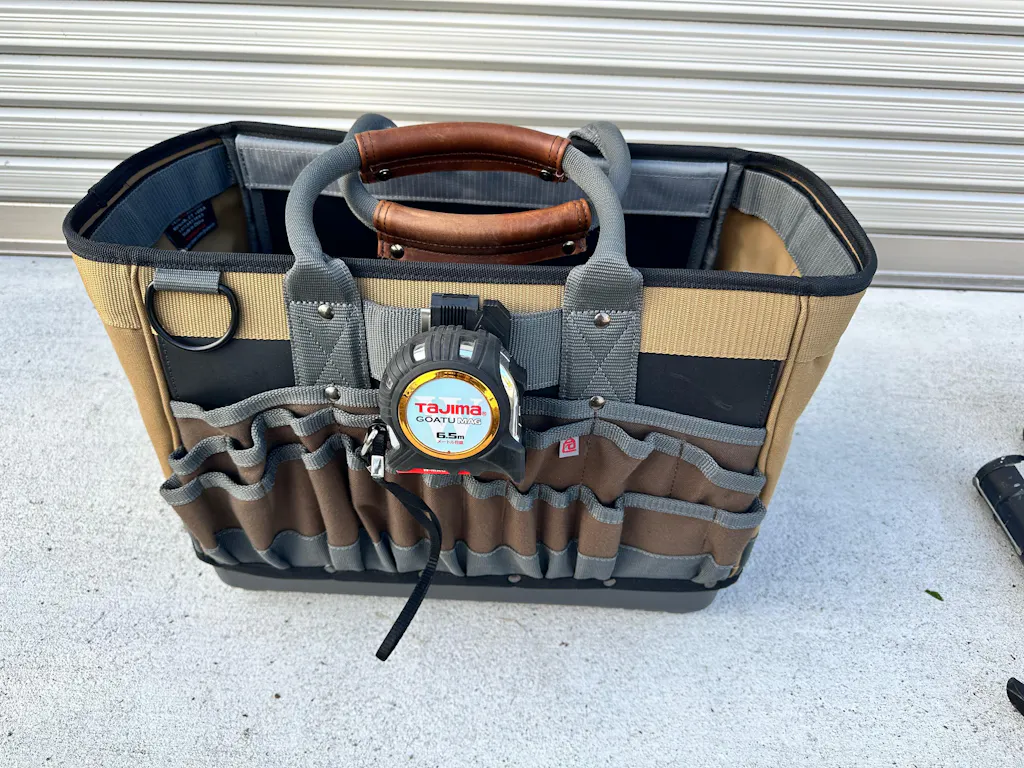 バック自体の重さにビックリしましたが慣れてくると思うし、入れ過ぎないように使おうと思います。工具差しは脱着出来るのでとても便利です。