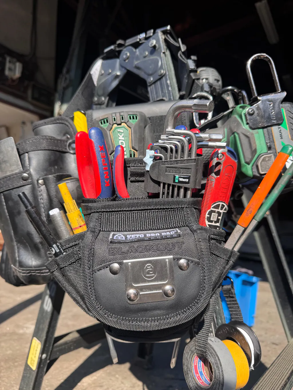 ドリル,インパクトを安定して持ち運ぶために、ドリル固定用ベルトを装備しております。